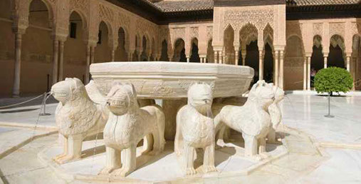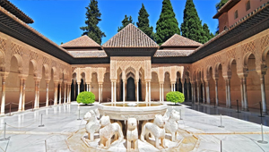 Visite de l'époustouflante Alhambra, perchée sur une colline, dominant la ville, son vaste ensemble fortifié comprend des palais royaux, des patios tranquilles et des piscines réfléchissantes de la dynastie Nasride, ainsi que les fontaines et les vergers des jardins du Généralife.